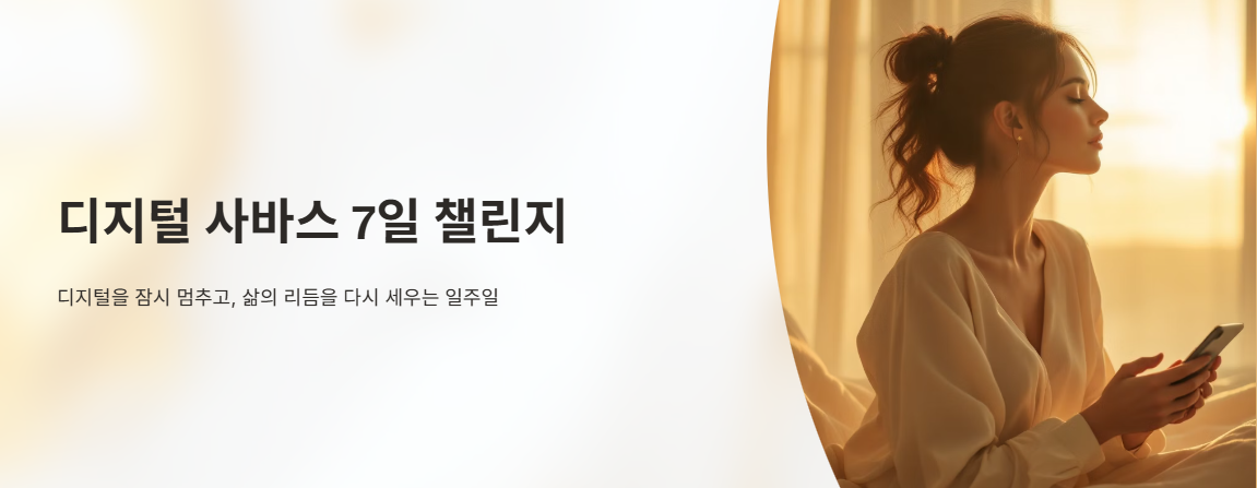 디지털을 잠시 멈추고, 디지털 사바스를 생활 루틴으로 정착시키기 위한 7일 챌린지! 집중력 회복, 감정 안정, 자기계발 루틴을 위한 구체적 실천 방법을 제시합니다.